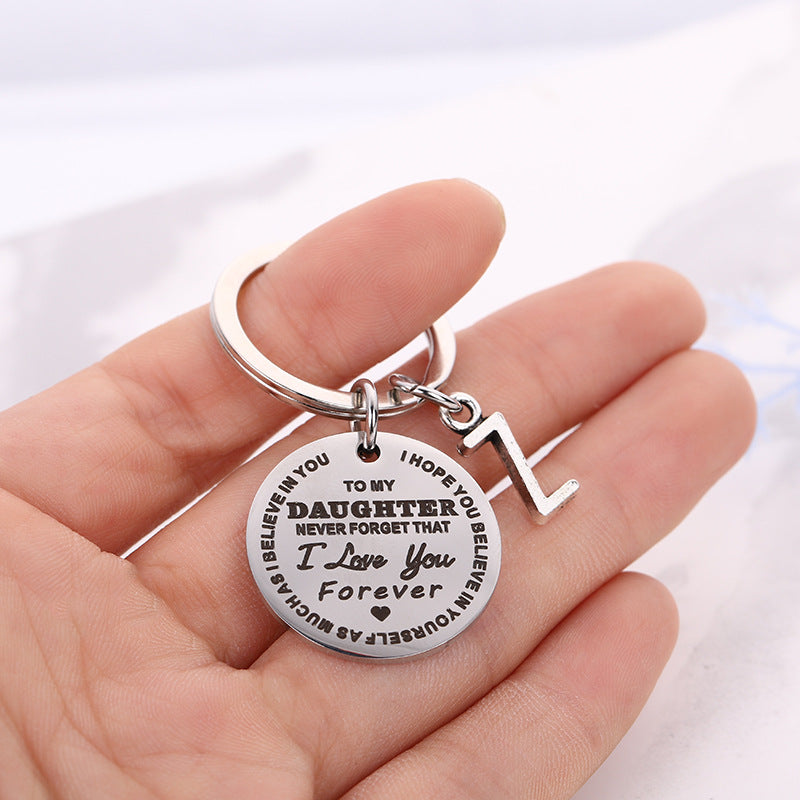 Family means putting your arms around each other and being there. Our Keychain is perfect for sons or daughters to celebrate your love or show your support for them. Choose the letter of your sons and daughters for a dedicated keychain with a beautiful message.